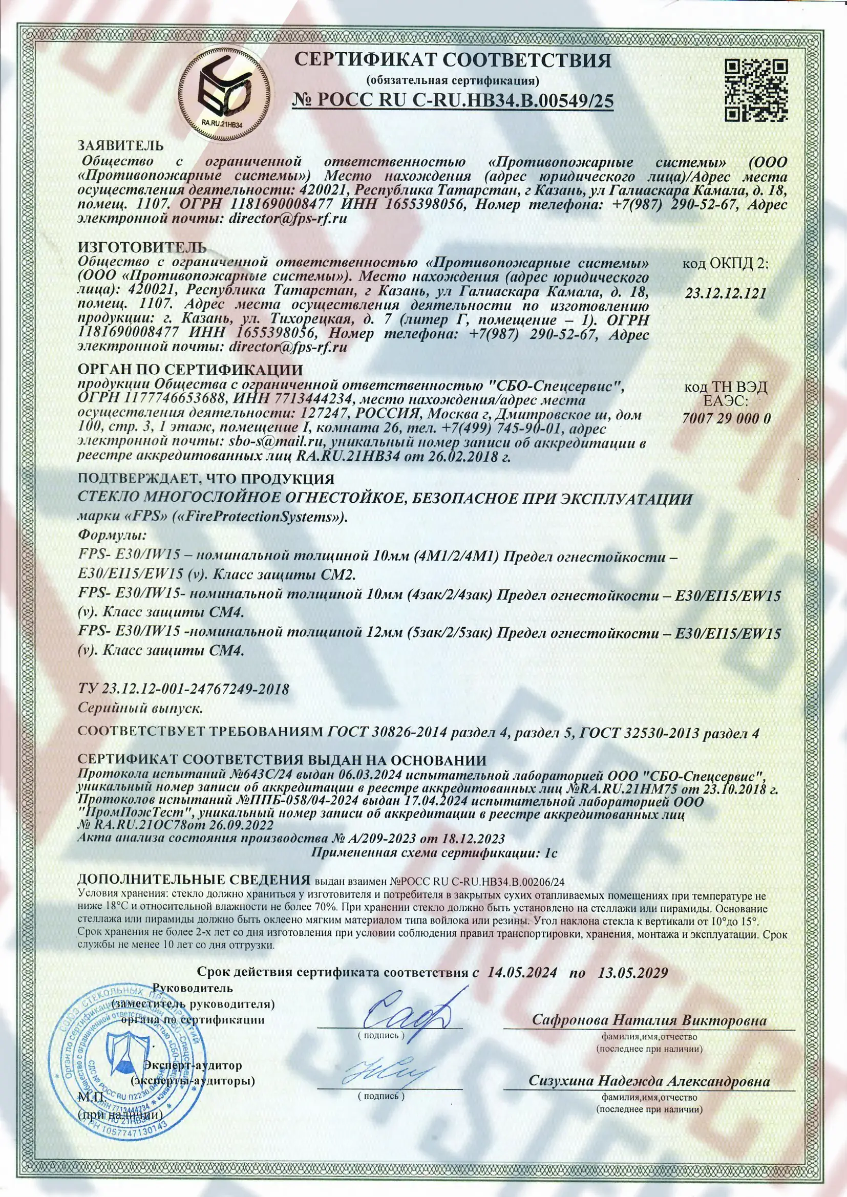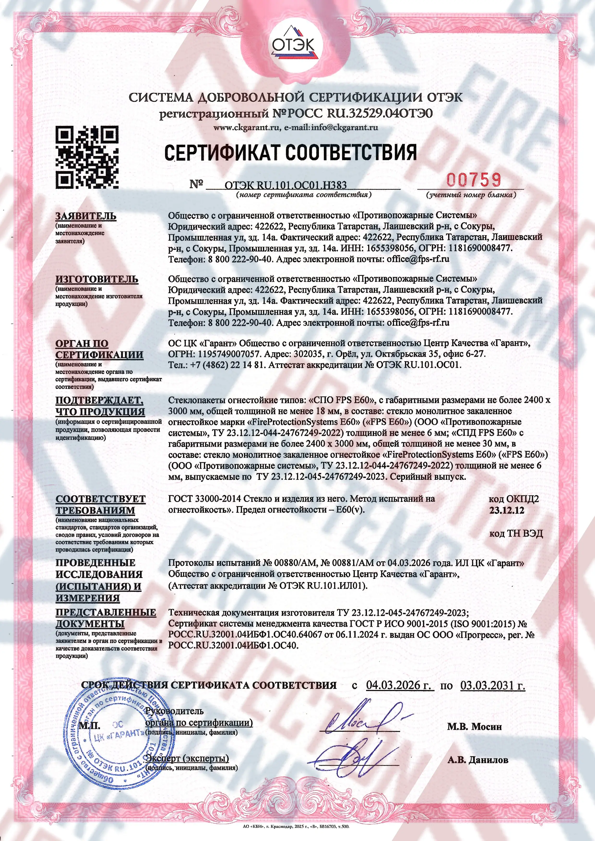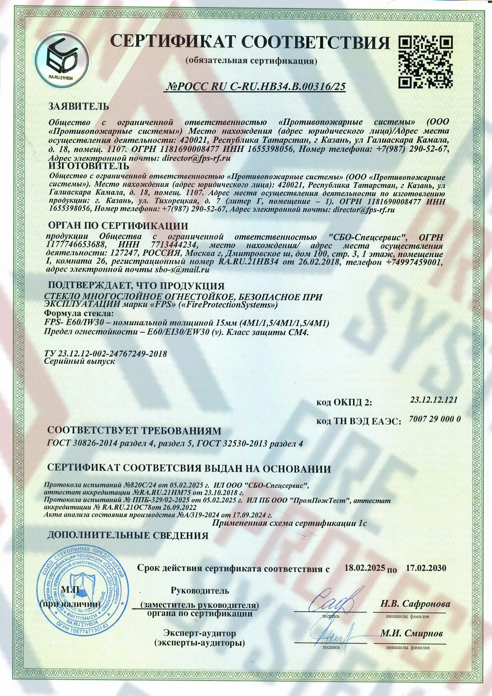 Соответствие нормам — сертифицировано согласно международным и российским стандартам пожарной безопасности.