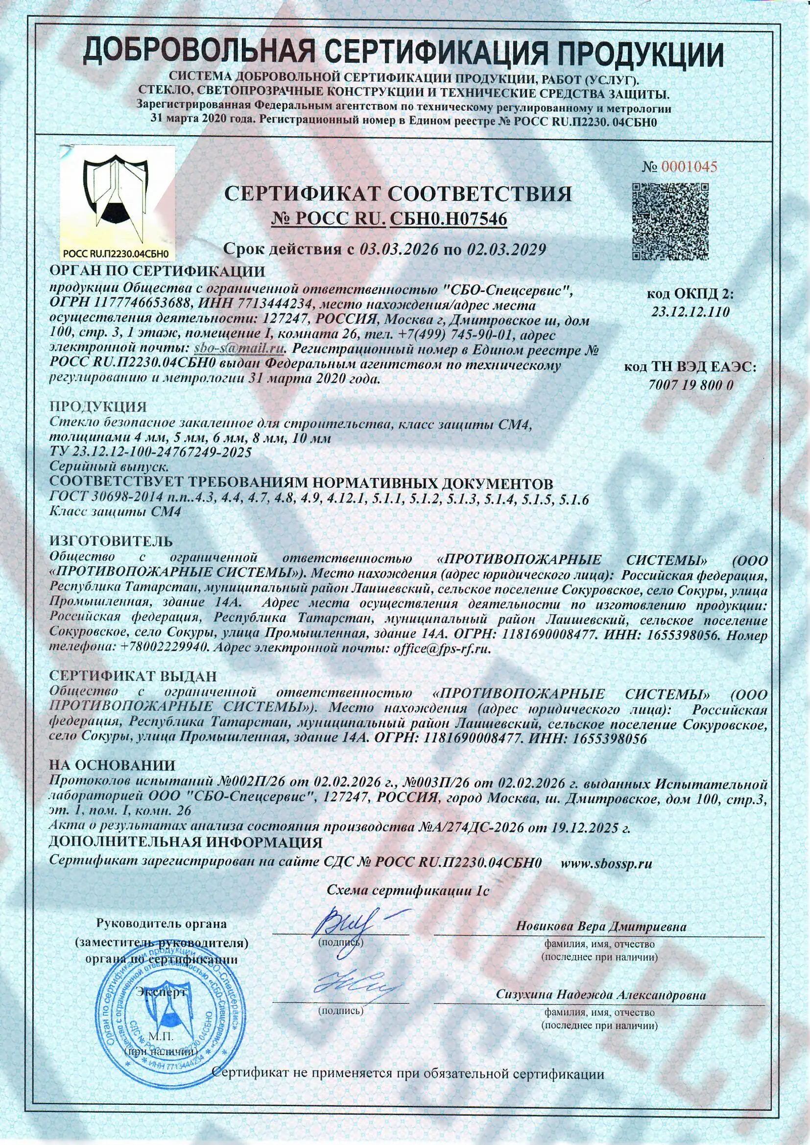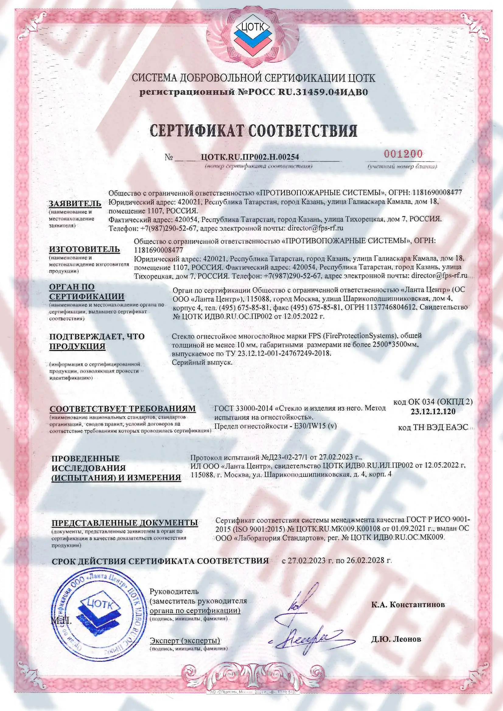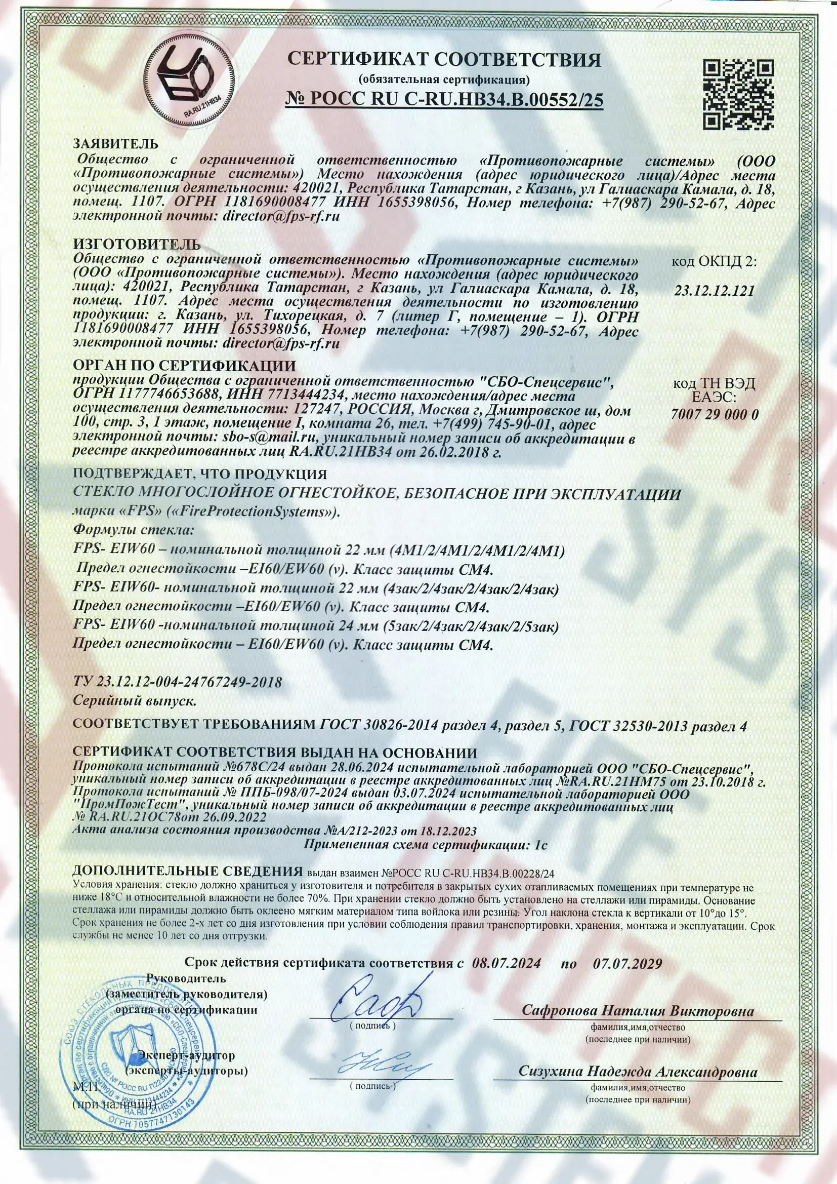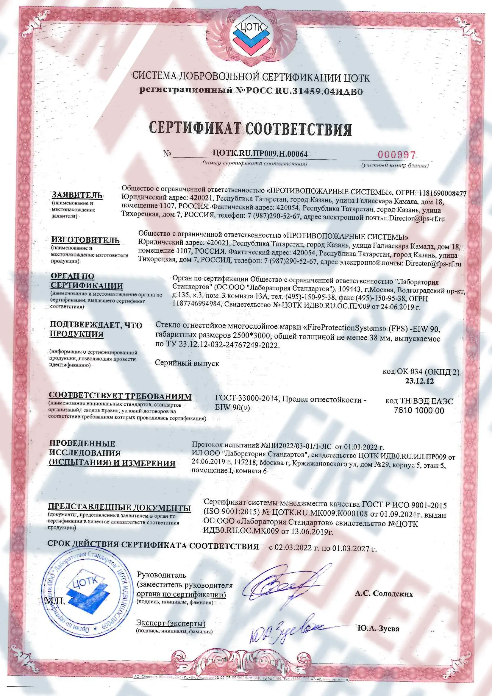 Соответствие нормам — сертифицировано согласно международным и российским стандартам пожарной безопасности.